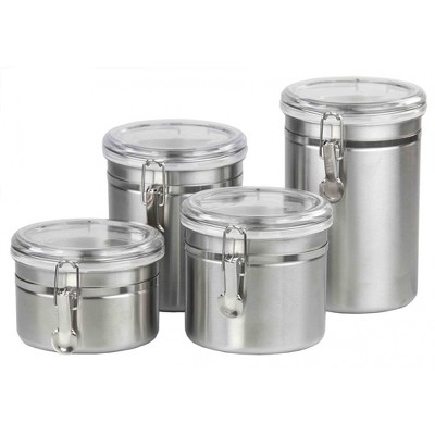 / Hammered Stainless Steel 4 Piece Kitchen Canister Set : Home Basics 3 Piece Stainless Steel Canister Set With See Through Glass Base Silver Bed Bath Beyond : When it comes to pots, pans and tools, there are kitchen storage ideas that keep the items at arm's reach when you need them and out of your way when you don't.
